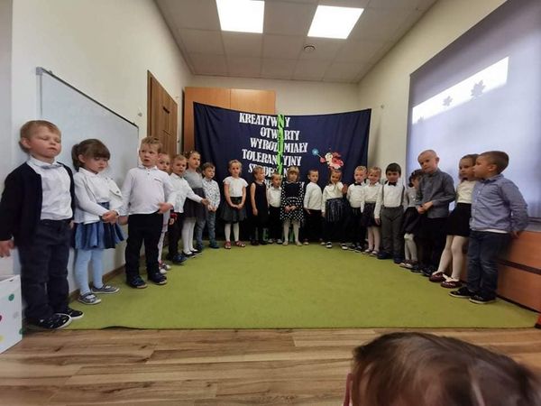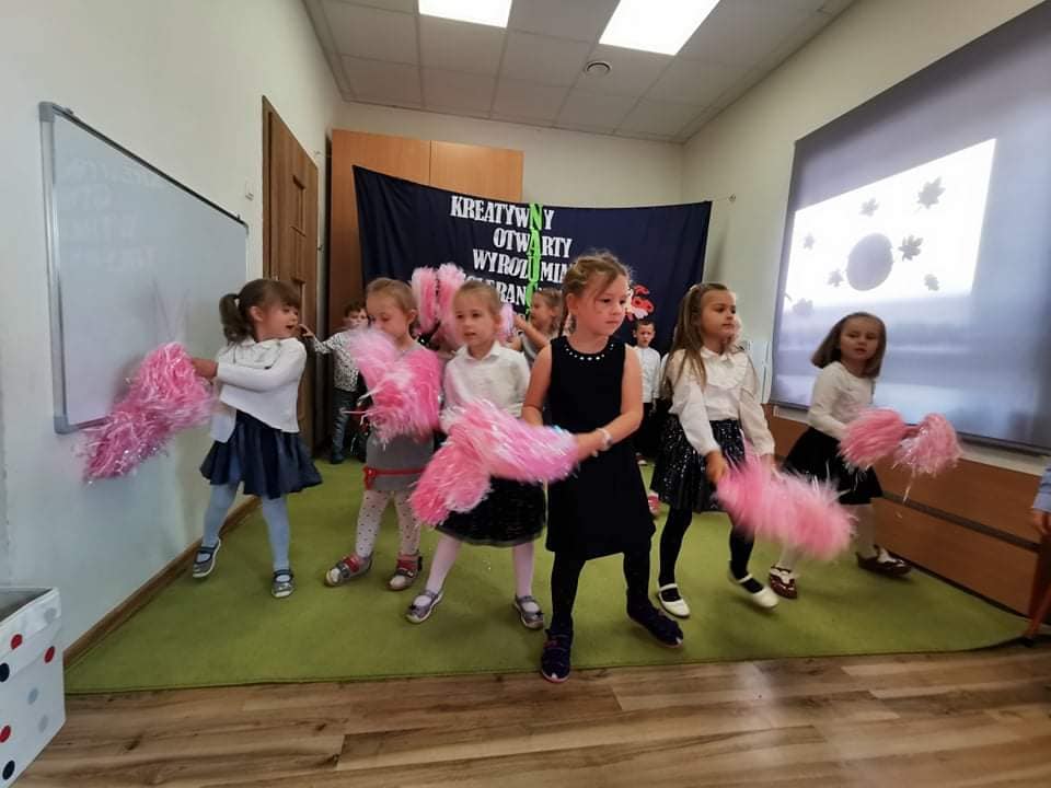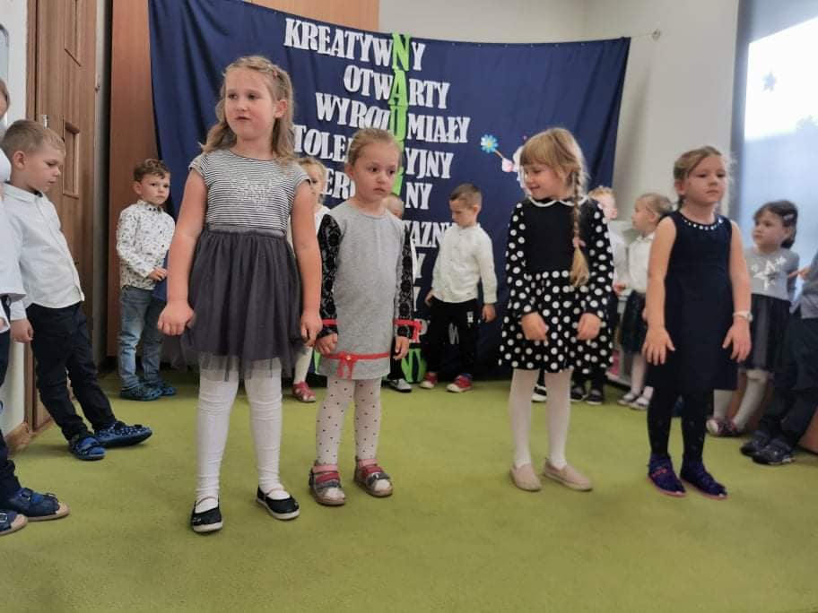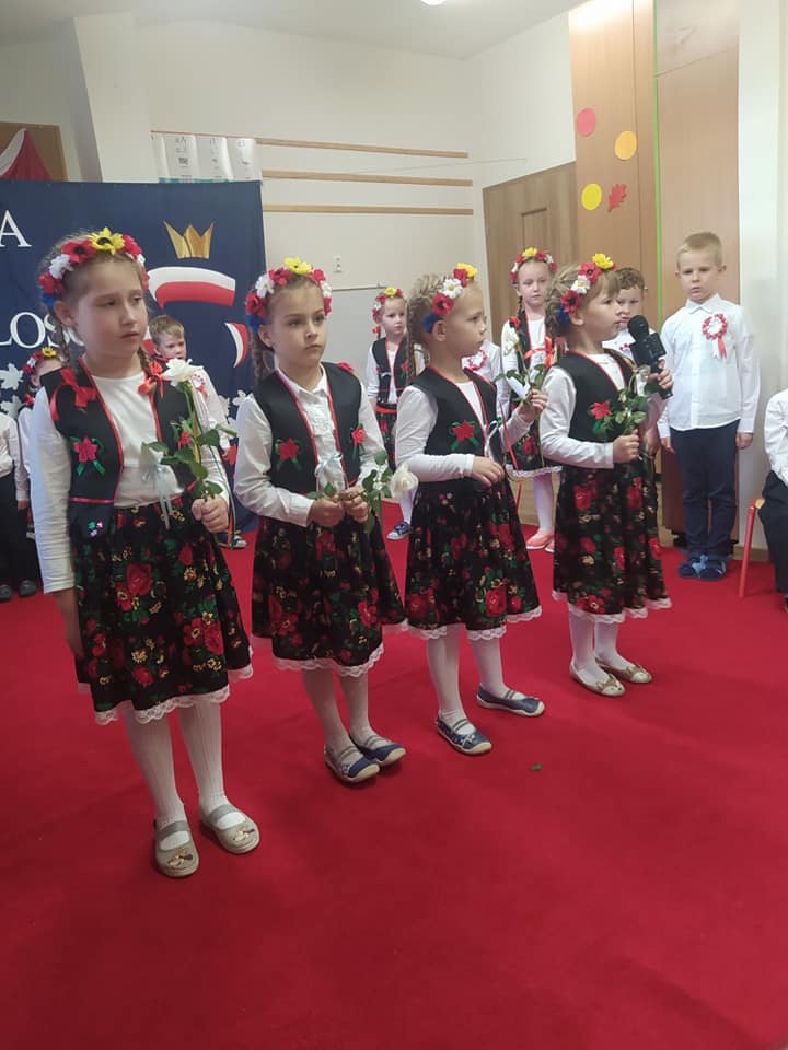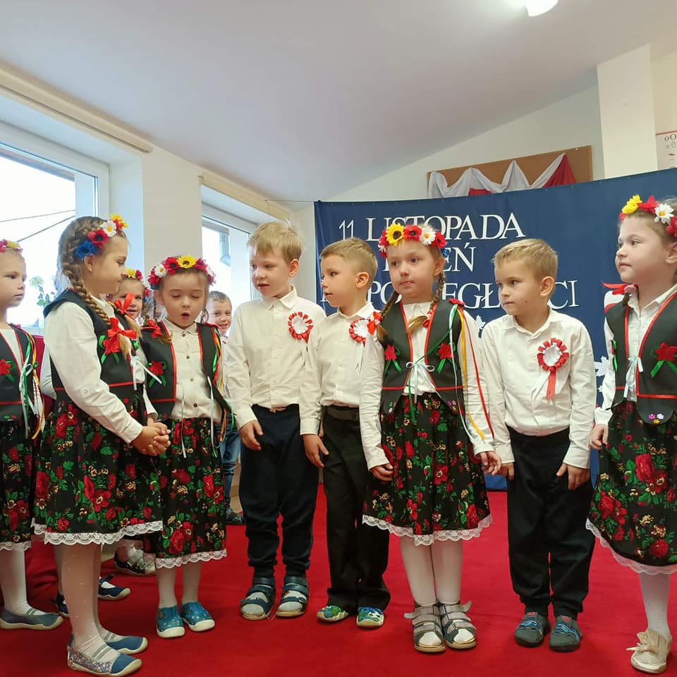 W naszym przedszkolu obchodziliśmy Narodowe Święto Niepodległości. Z tej okazji wszystkie grupy zebrały się, aby uroczyście świętować ten wyjątkowy dla nas Polaków dzień. Podczas występów dzieci recytowały wiersze, śpiewały piosenki oraz zatańczyły Krakowiaka. Dumnie odśpiewały też hymn Polski ,,Mazurek Dąbrowskiego”.