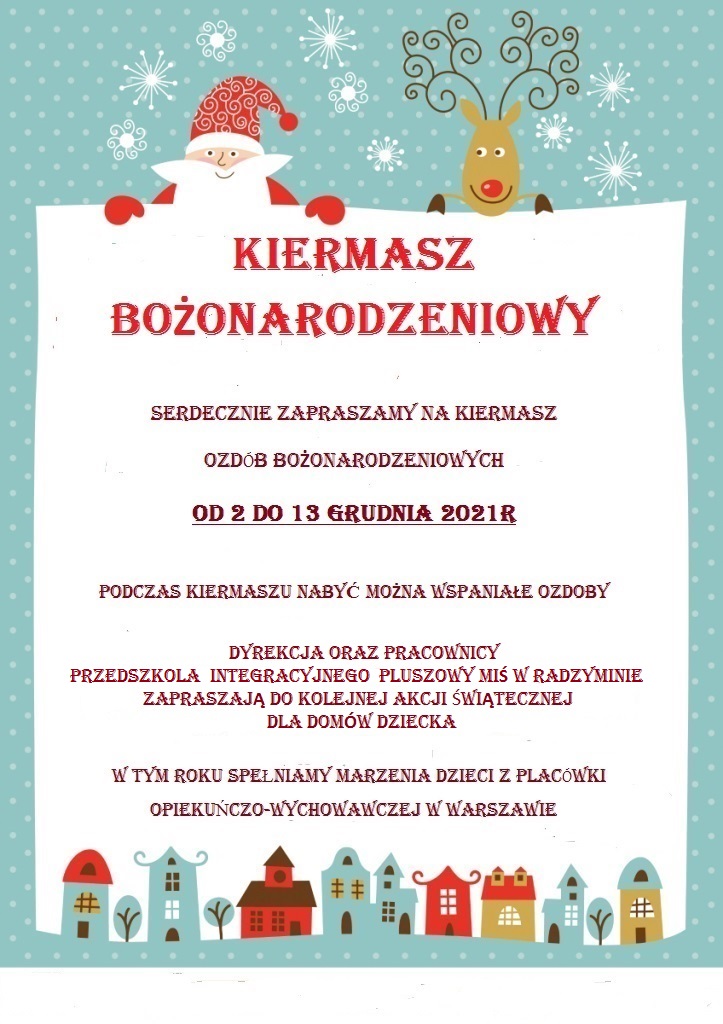 Tradycyjnie tuż przed Świętami Bożego Narodzenia w naszej placówce już po raz kolejny zorganizowany został kiermasz. Zapraszamy Państwa do nabycia pięknych ozdób, wykonanych przez nauczycieli, pracowników a także rodziców naszego przedszkola.