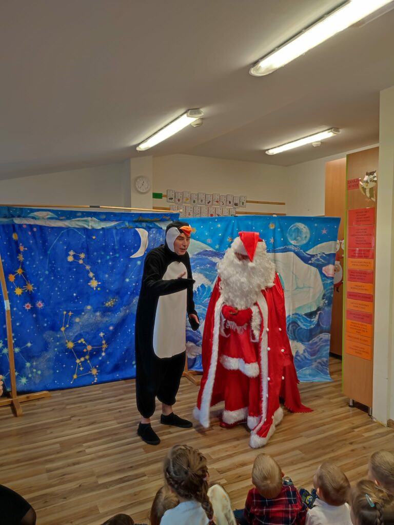 Dnia 15 grudnia do przedszkola przybył św. Mikołaj, który spotkał się z dziećmi przy wspólnej zabawie. Każde dziecko miało okazję osobistego spotkania z Mikołajem i otrzymania od niego prezentu. Czas umilał nam Teatr Warszawski Koliberek