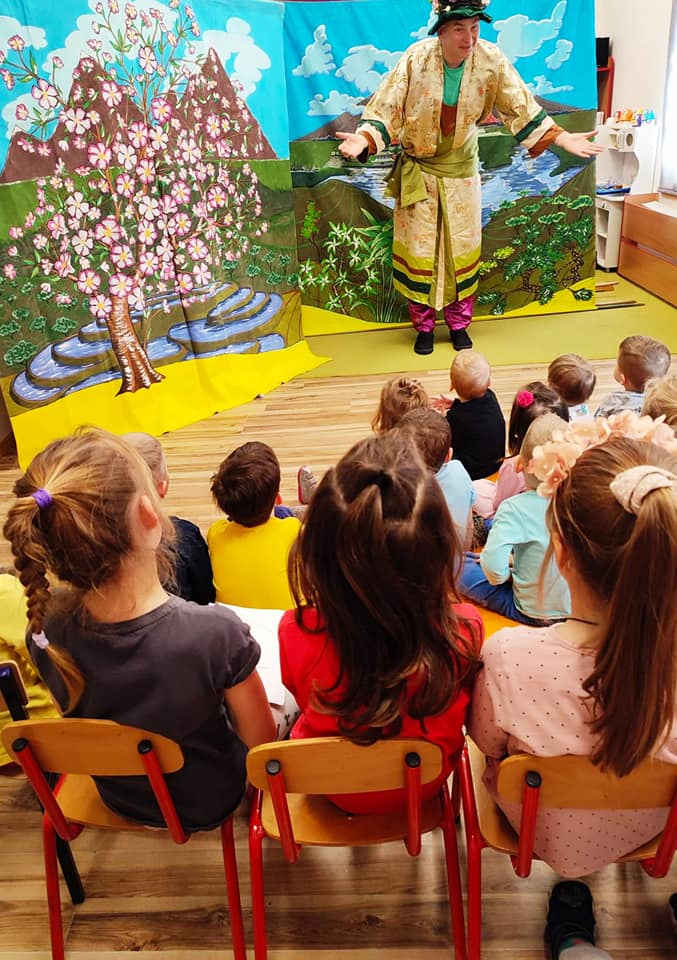 W dniu 23.03 nasze przedszkole po raz kolejny odwiedził Teatr Warszawski Koliberek. Tym razem dzieci obejrzały przedstawienie pt. ,, Opowieści z Dalekiego Wschodu”. Przedszkolaki z wielkim zaciekawieniem oglądały spektakl, nie zabrakło również dawki dobrego humoru i wspólnej zabawy.