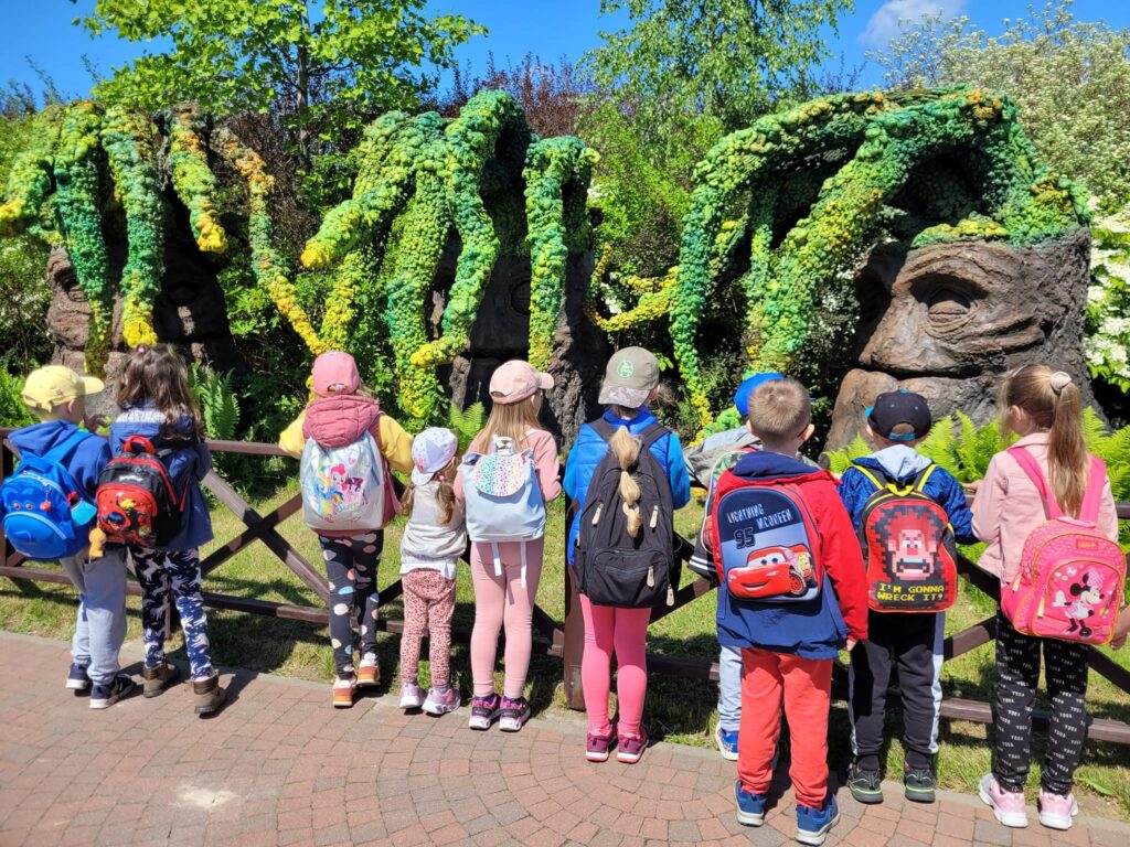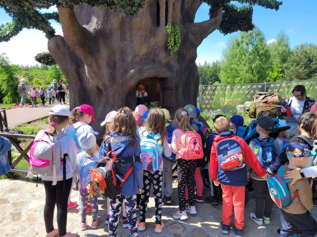 Wycieczka do Magicznych Ogrodów dostarczyła naszym przedszkolakom wiele emocji i wrażeń. Wędrujac szerokimi alejami, wśród szumiących strumieni, zieleni, barwnych i pachnących kwiatów mogliśmy dotrzeć do ciekawych krain. Podczas wędrówki napotykaliśmy kolejnych mieszkańców Magicznych Ogrodów: Skrzata, Krasnoludy, Bulwiaki, Wróżki Smużki, Robanki, Mordole, smoki. Dzieci zwiedzały świat Magicznych Ogrodów jednocześnie doświadczając, pobudzajac zmysły, kreatywność i wyobraźnię. Na pewno tam wrócimy.