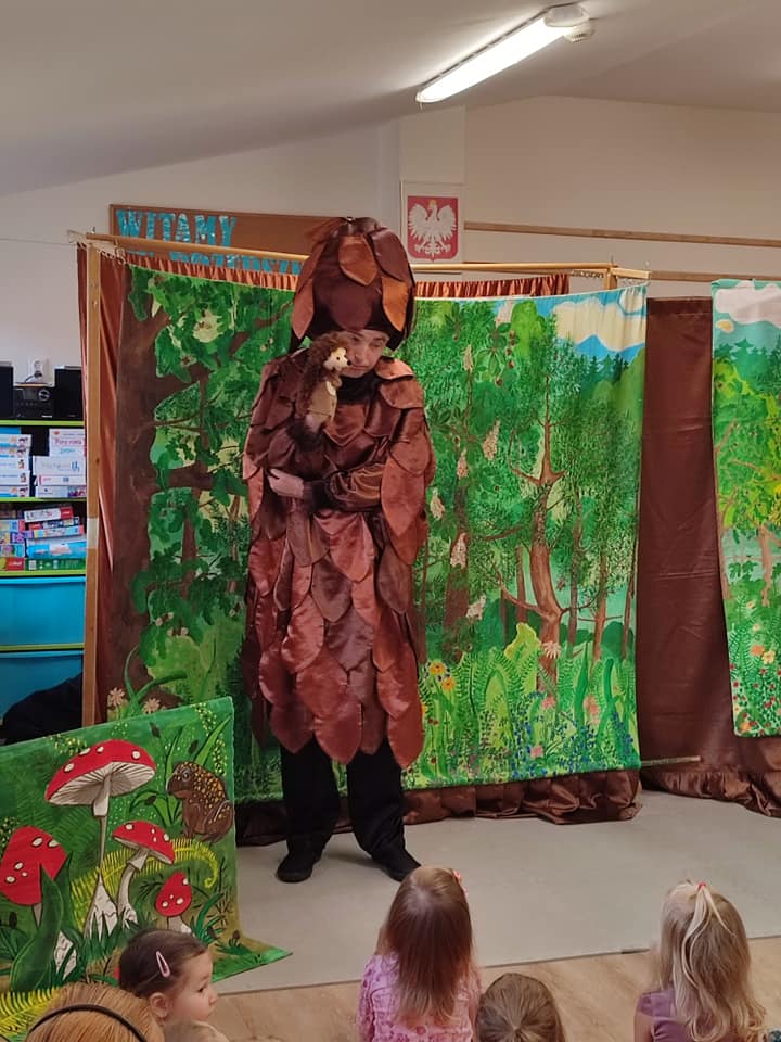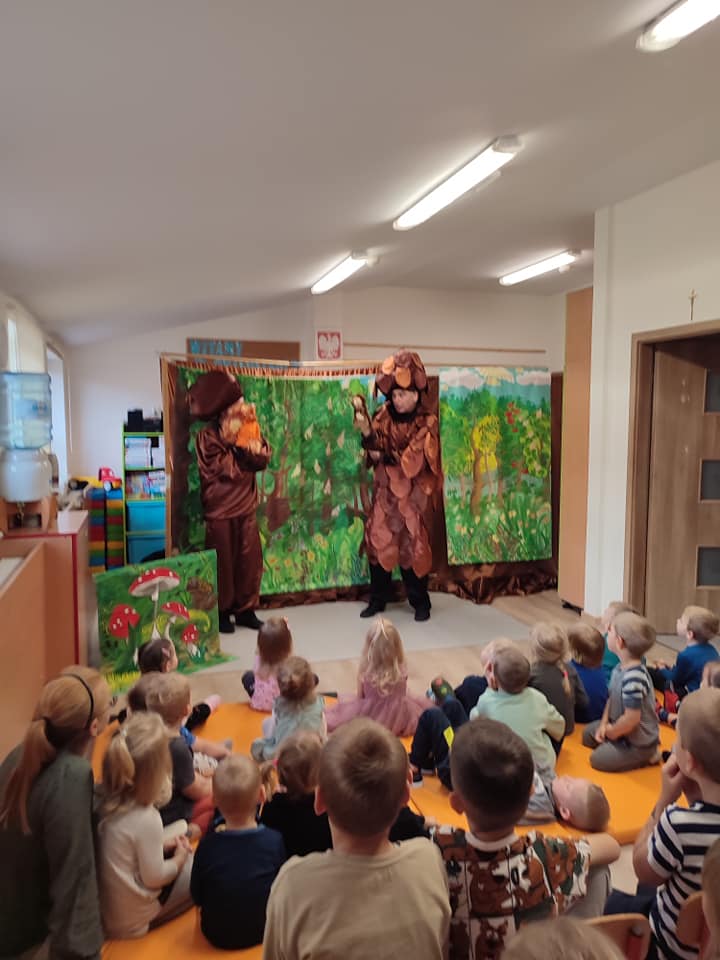 W dniu 21.09 nasze przedszkole odwiedził Teatr Warszawski Koliberek. Dzieci obejrzały przedstawienie pt.,,Przygody Jeżyka Grzebyka”, wprowadzając je w tematykę zbliżającej się jesieni. Przedszkolaki z wielkim zaciekawieniem oglądały spektakl, nie zabrakło również dawki dobrego humoru i wspólnej zabawy.