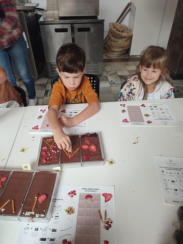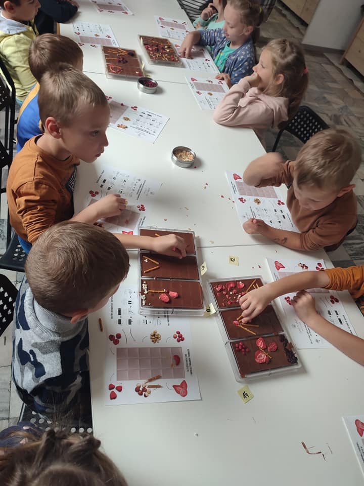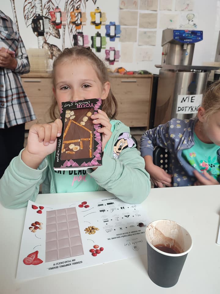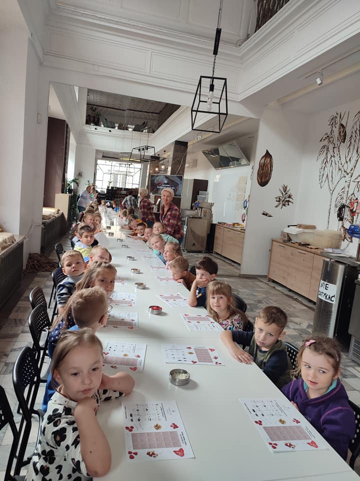 20 września grupa Biedronek wybrała się na wycieczkę do Manufaktury Czekolady – idealnego miejsca dla wszystkich łasuchów. Podczas warsztatów dzieci zdobyły informacje na temat procesu powstawania czekolady – ,,Od ziarenka do tabliczki „. Przedszkolaki przygotowały również własną tabliczkę czekolady z przeróżnymi dodatkami – malinami, jabłkami, orzechami, truskawkami, którą własnoręcznie zapakowały w wybrane przez siebie opakowanie. Nie obyło się również bez degustacji ziaren kakaowca oraz przepysznej czekolady do picia.