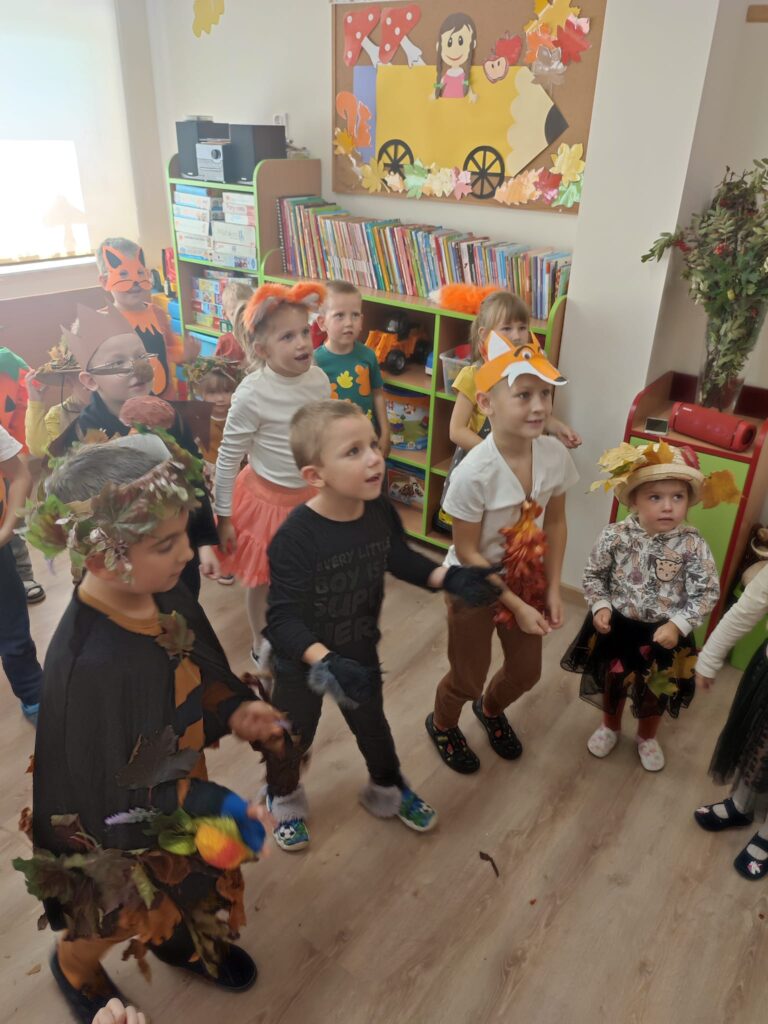 23 września odbył się w naszym przedszkolu bal jesienny, tak właśnie dzieci przywitały jesień. Motywem przewodnim był las i jego mieszkańcy. Do przedszkola przybyły jeże, lisy, wilki, kasztany, muchomorki, dynie i nawet sama Pani Jesień ! Było kolorowo, wesoło i bardzo tanecznie.