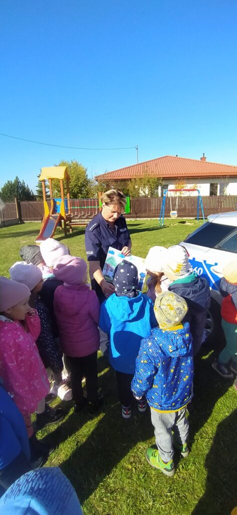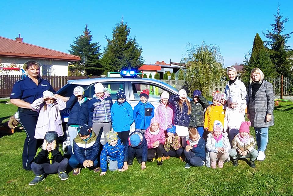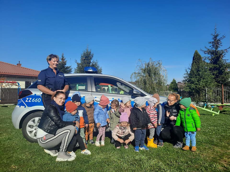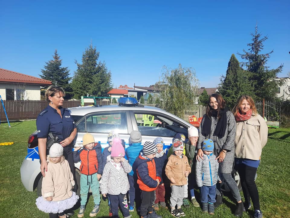 12 października nasze przedszkole odwiedziła Pani Policjantka, która przybliżyła dzieciom podstawowe zasady bezpiecznego poruszania się po drodze oraz przypomniała numery alarmowe. Dzieci otrzymały wskazówki, jak zachować się w sytuacji spotkania osoby obcej. Jednak największym zainteresowaniem cieszyła się prezentacja radiowozu policyjnego.