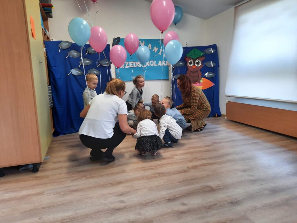 28 października 2021roku w naszym przedszkolu w grupie ,,Zajączki” odbyła się uroczystość pasowania na przedszkolaka. Od samego rana trwały przygotowania, a w sali zgromadzili się goście – ,,Sówki”, ,,Biedronki” i ,,Kaczuszki”. Mali artyści zaprezentowali przygotowane piosenki oraz tańce, dając tym samym dowód , jak dużo już potrafią. Dla większości był to pierwszy, bardzo ważny występ. Po części artystycznej nastąpił akt pasowania przez Panią Dyrektor Grażynę Kaliszewską. Na pamiątkę tego wydarzenia każdy przedszkolak otrzymał dyplom pasowania, przygotowany został również słodki poczęstunek.