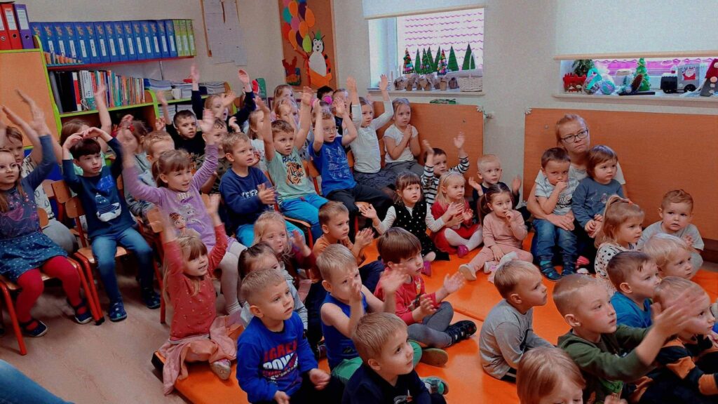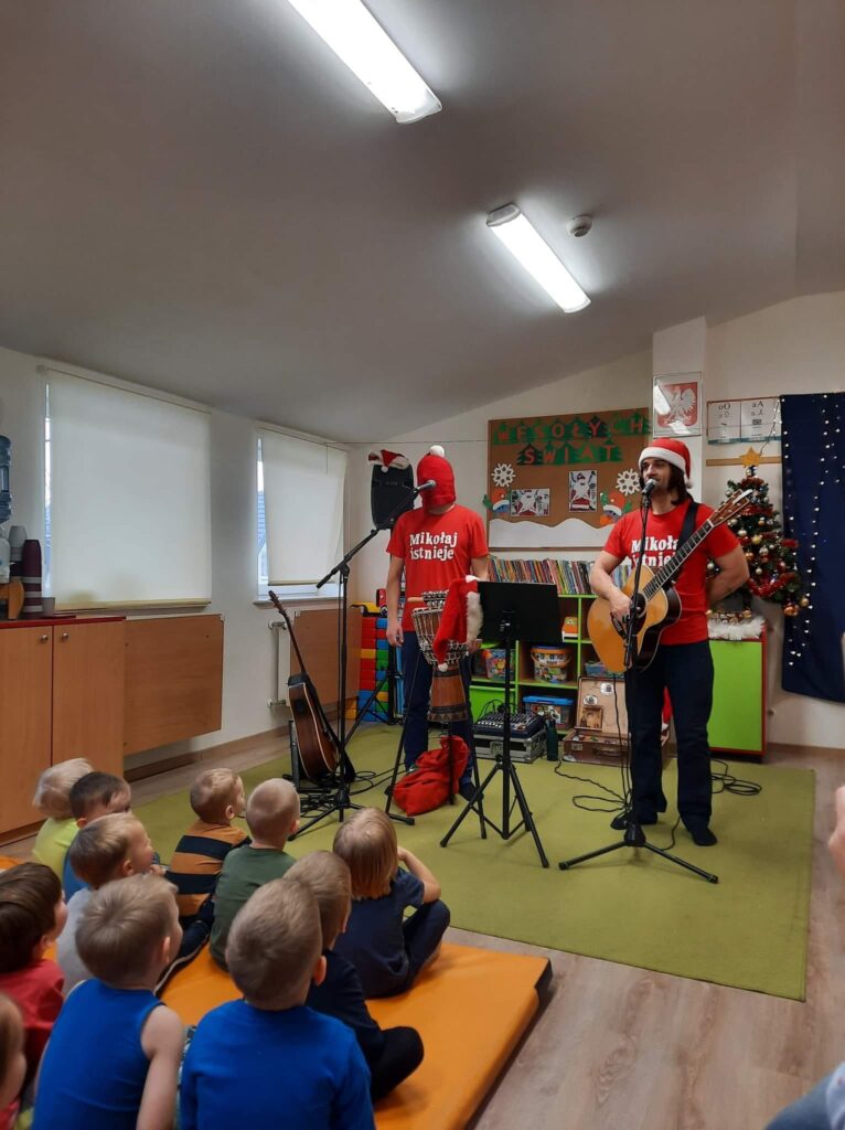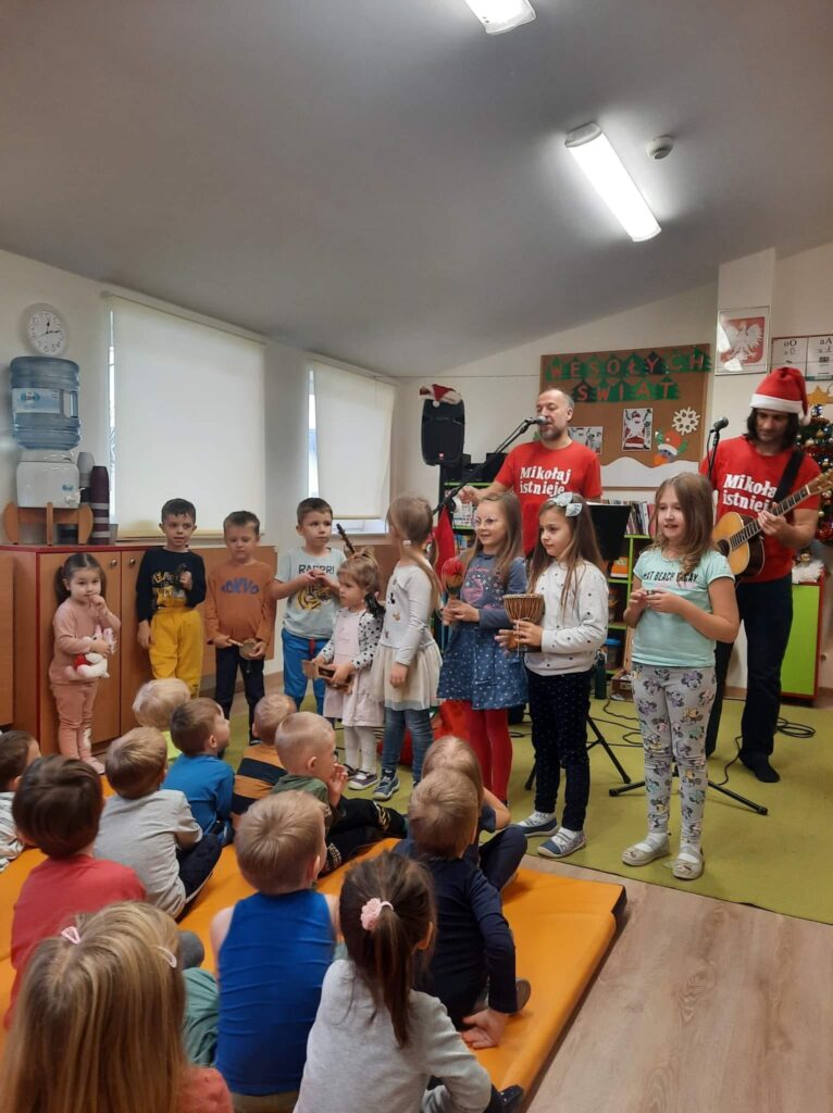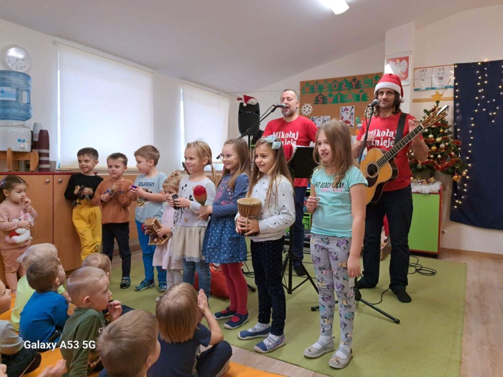 9 grudnia gościliśmy w naszym przedszkolu Małą Orkiestrę Dni Naszych. „Edukacja przez zabawę, uśmiech i muzykę” – to motto, które towarzyszy zespołowi. Dzieci z zaangażowaniem uczestniczyły w koncercie klaszcząc, śpiewając i grając na instrumentach. Spotkanie wprowadziło wszystkich w radosny, świąteczny nastrój.
