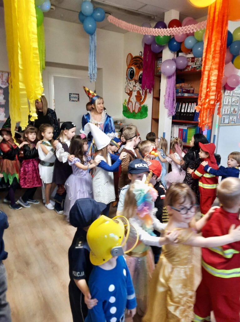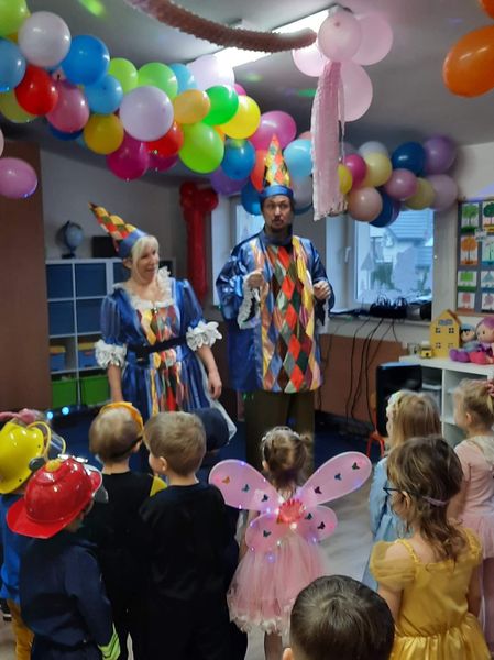 W dniu 19.01.2022 r. w naszym przedszkolu odbył się bal karnawałowy poprowadzony przez aktorów Teatru Warszawski Koliberek. Dzieci przebrane w piękne stroje, uczestniczyły w zabawach oraz wspólnych tańcach. Nie zabrakło też konkurencji. Na zakończenie balu wybrani zostali Król i Królowa balu. Zabawa była bardzo udana.